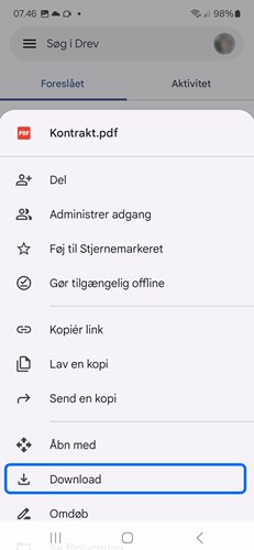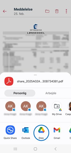 Vælg ”Drev”. Tryk på filens navn og giv det et retvisende navn som fx ”Kontrakt” eller ”Lønseddel” og tryk på ”Gem”.
