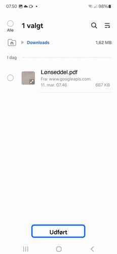 Vælg ”Drev”. Marker dokumentet og tryk på ”Udført”. (Select "Drive" and select the document and press ”Udført” (Done).