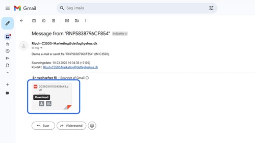 Log ind på din mail. Find mailen, med dokumentet vedhæftet og hent eller download dokumentet. Gem dem i fx ”Overførsler” eller ”Downloads”.
